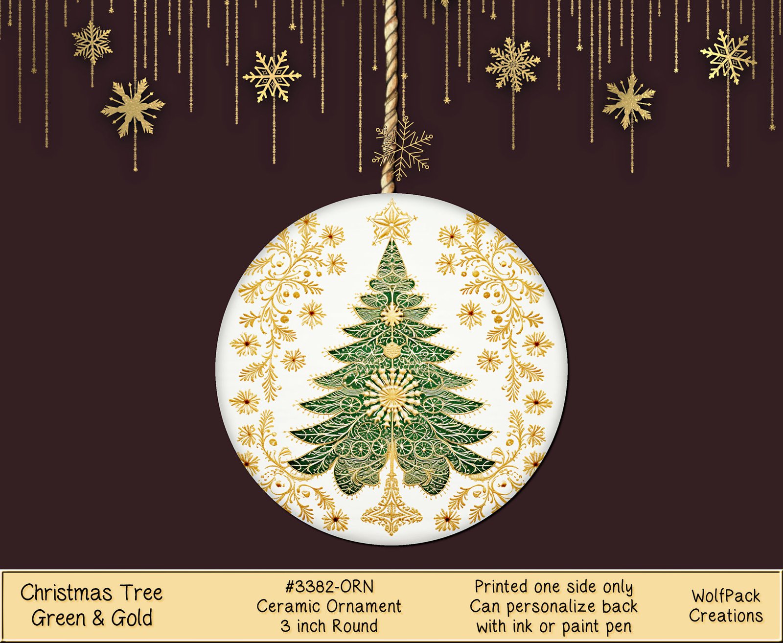 Add a touch of festive elegance to your Christmas decor with our 3″ Ceramic Ornament in classic green and gold. This round ornament beautifully adorns your tree, spreading holiday cheer and merry vibes. Elevate your holiday celebrations with this timeless piece that captures the spirit of the season.