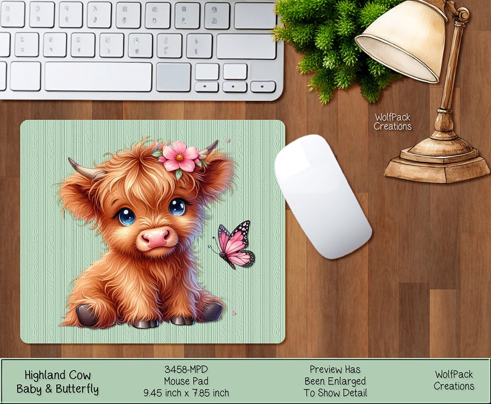 Elevate your workspace with our charming Baby Highland Cow with Flowers Mousepad. Embrace nature-inspired tranquility as you work surrounded by delightful butterflies and lush greenery. Perfect for adding a touch of whimsy to your desk while providing a smooth surface for your computer mouse. Ideal for animal lovers and nature enthusiasts.