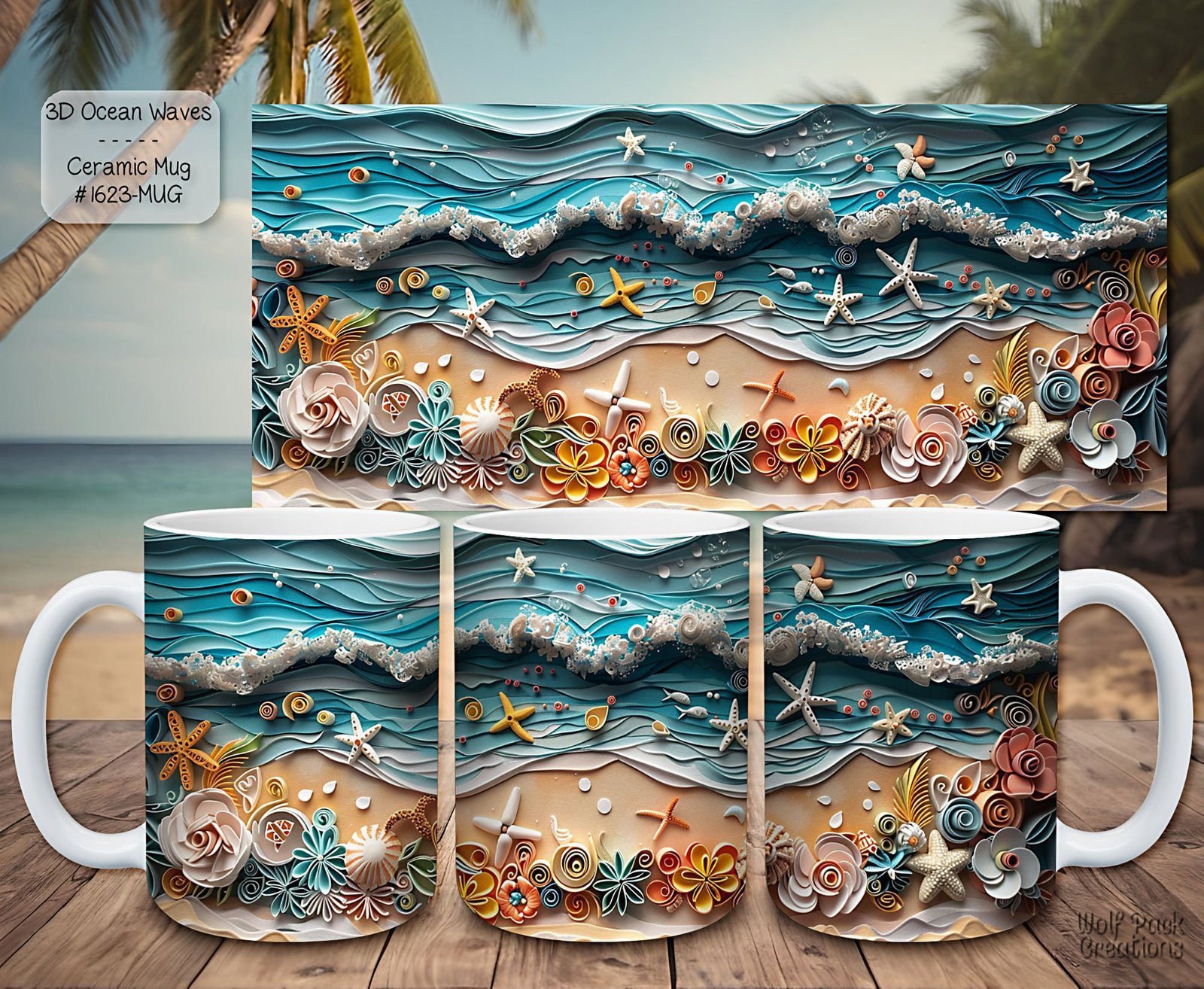 Inspired by the beauty and tranquility of the ocean, our mugs feature a unique waves pattern that is both soothing and stylish. The design is printed with high-quality, fade-resistant inks, ensuring your mug looks as good as new even after countless washes.