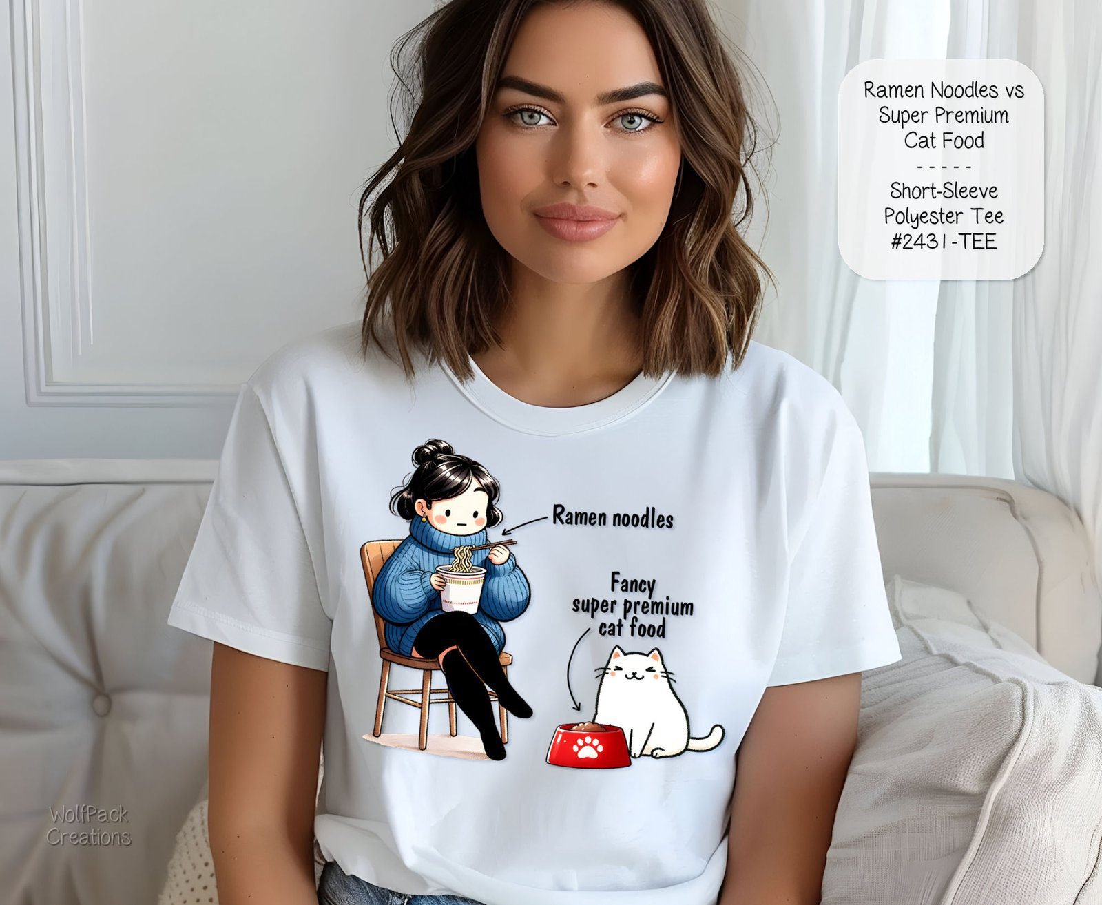 Featuring playful designs such as ramen noodles and charming cat food patterns, this shirt is bound to be a conversation starter. Express your unique personality with every wear!