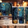 The tumbler features a beautiful stained glass design with moon, bats, and pumpkins, making it a delightful accessory for any occasion. Whether you’re at a Halloween party or just love the spooky aesthetic, this tumbler adds a touch of magic to your drinkware collection.