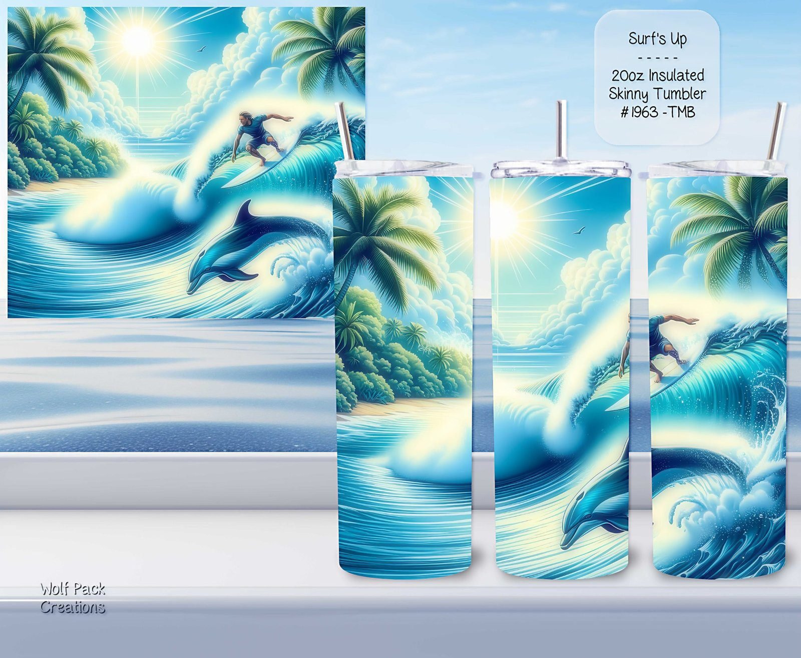 The ‘Surfs Up’ design makes this tumbler not only functional but also stylish. It’s the perfect accessory for beach lovers and surf enthusiasts, adding a touch of coastal charm to your everyday life.