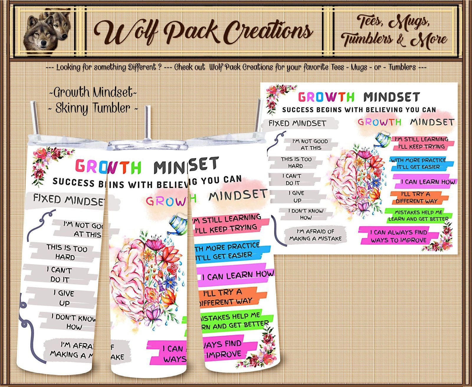 Hydration is key to maintaining a healthy and productive lifestyle. Our stainless steel skinny tumbler not only supports your physical needs but also encourages a growth mindset. With a sleek design that fits comfortably in your hand, it serves as a daily reminder to stay positive and keep pushing forward. So why wait? Elevate your hydration game and embrace a growth mindset with our 20-ounce stainless steel skinny tumbler. It’s more than just a drink container – it’s a lifestyle choice!