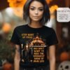 Embrace your love for all things eerie with the spooky witch design featured prominently on the shirt. This unique print adds a magical touch that sets it apart from your everyday wear.