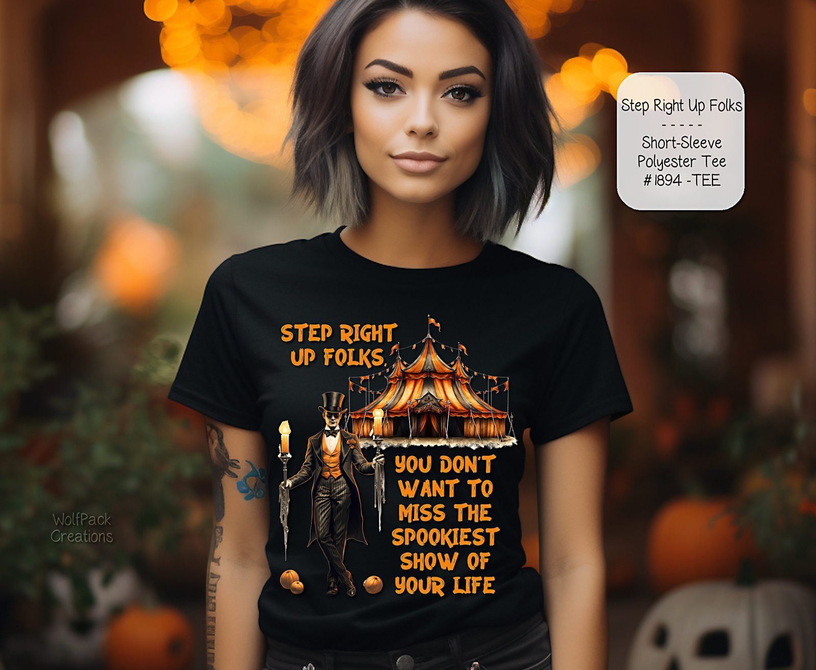 Introducing our new unisex Spooky Circus short sleeve shirt, crafted from high-quality polyester. This unique shirt offers a blend of comfort and an eye-catching design that is perfect for any casual occasion.