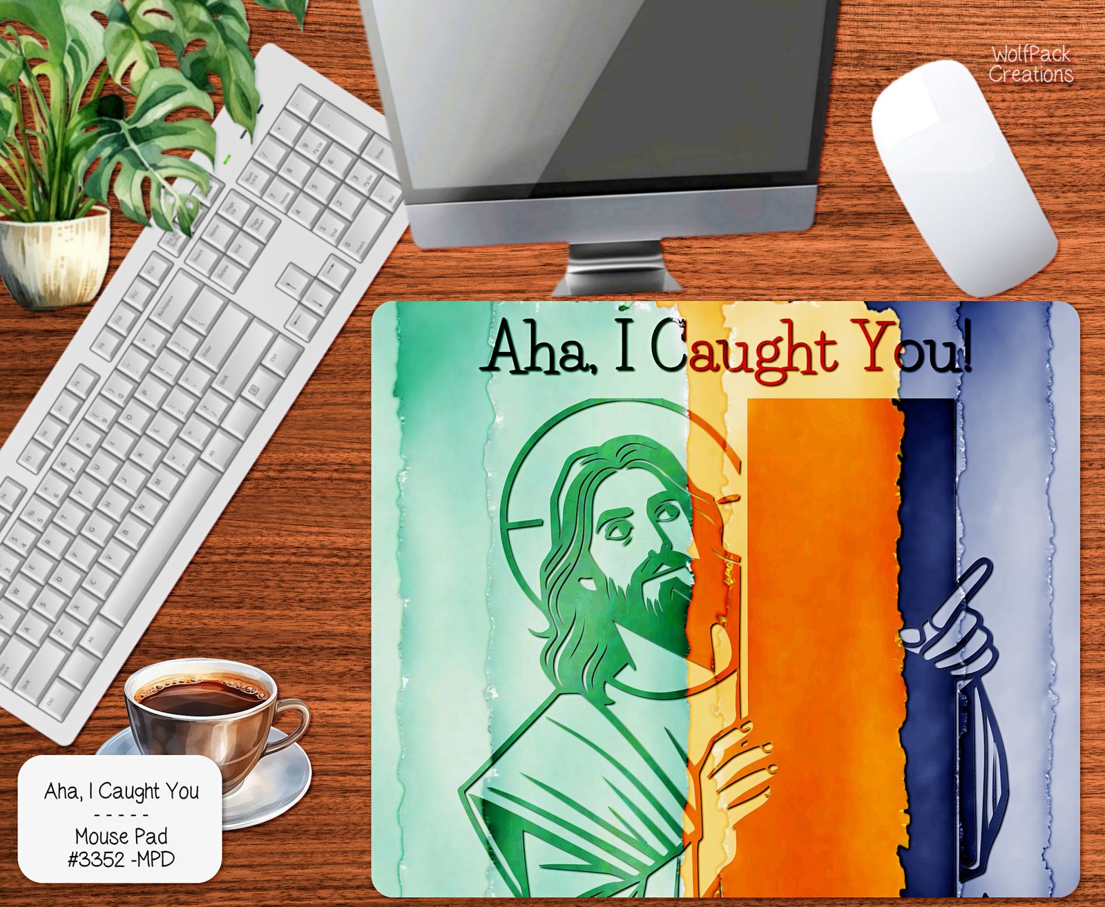 Elevate your workspace with the “I Caught You” mousepad featuring striking hues of green, blue, and orange. This unique design blends humor with faith, making it a perfect gift for believers. Enjoy a smooth surface for effortless mouse movement, adding a touch of inspiration to your daily tasks. Get yours now!