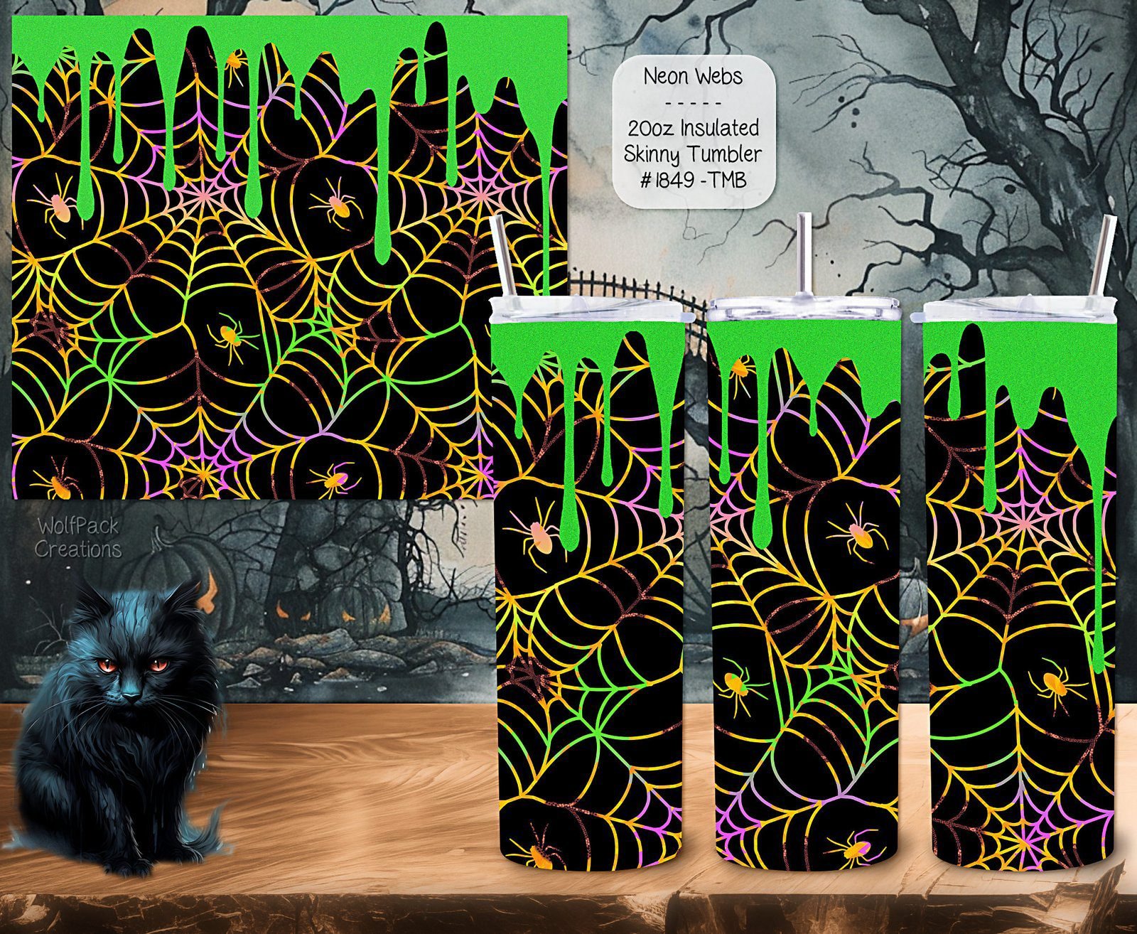 Be the first to review “Enjoy Spooky Season with Our Stainless Steel Skinny Tumbler Adorned with Neon Webs”