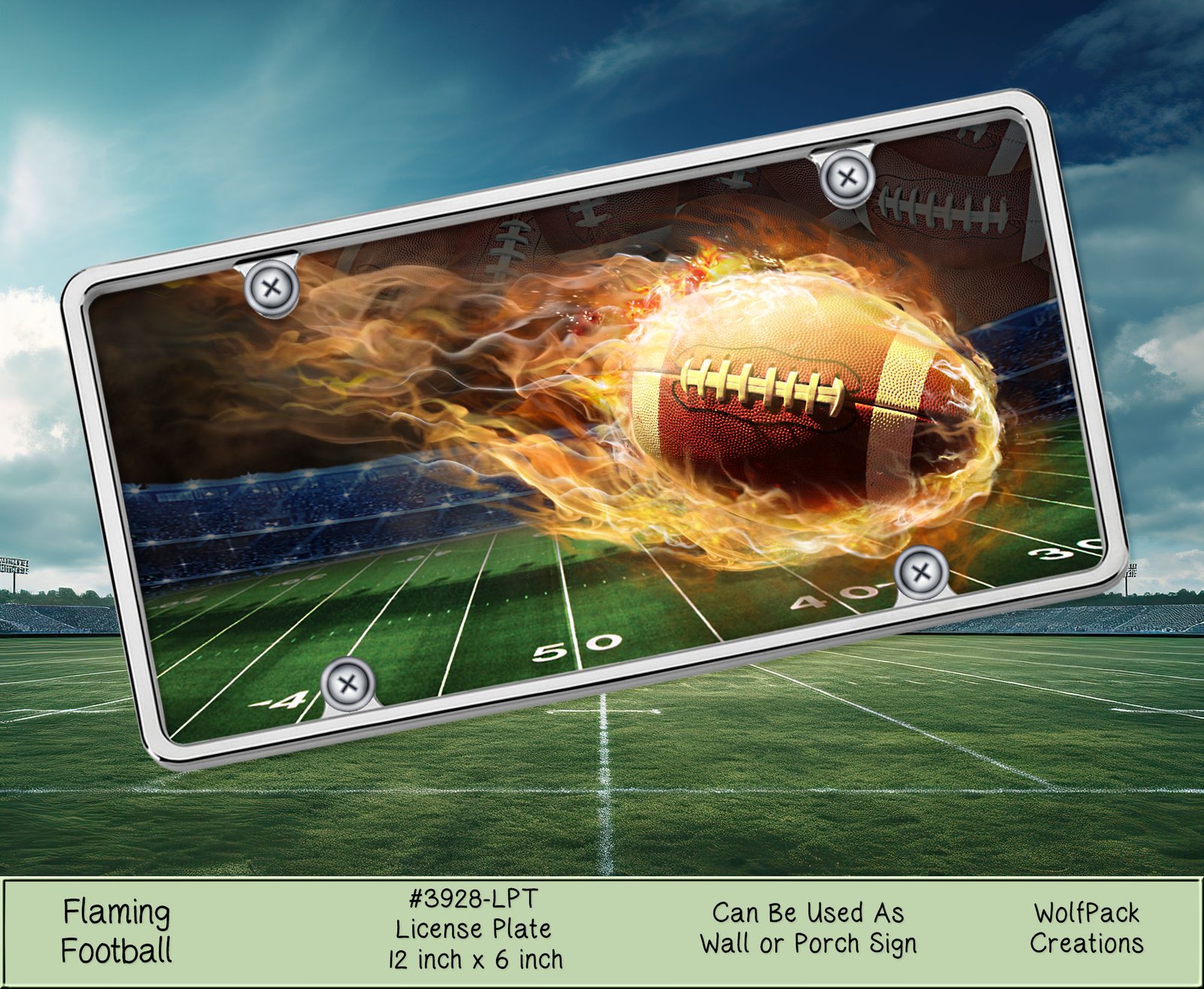 Be the first to review “Flaming Football License Plate: Customize Your Ride with Fiery Sports Style”