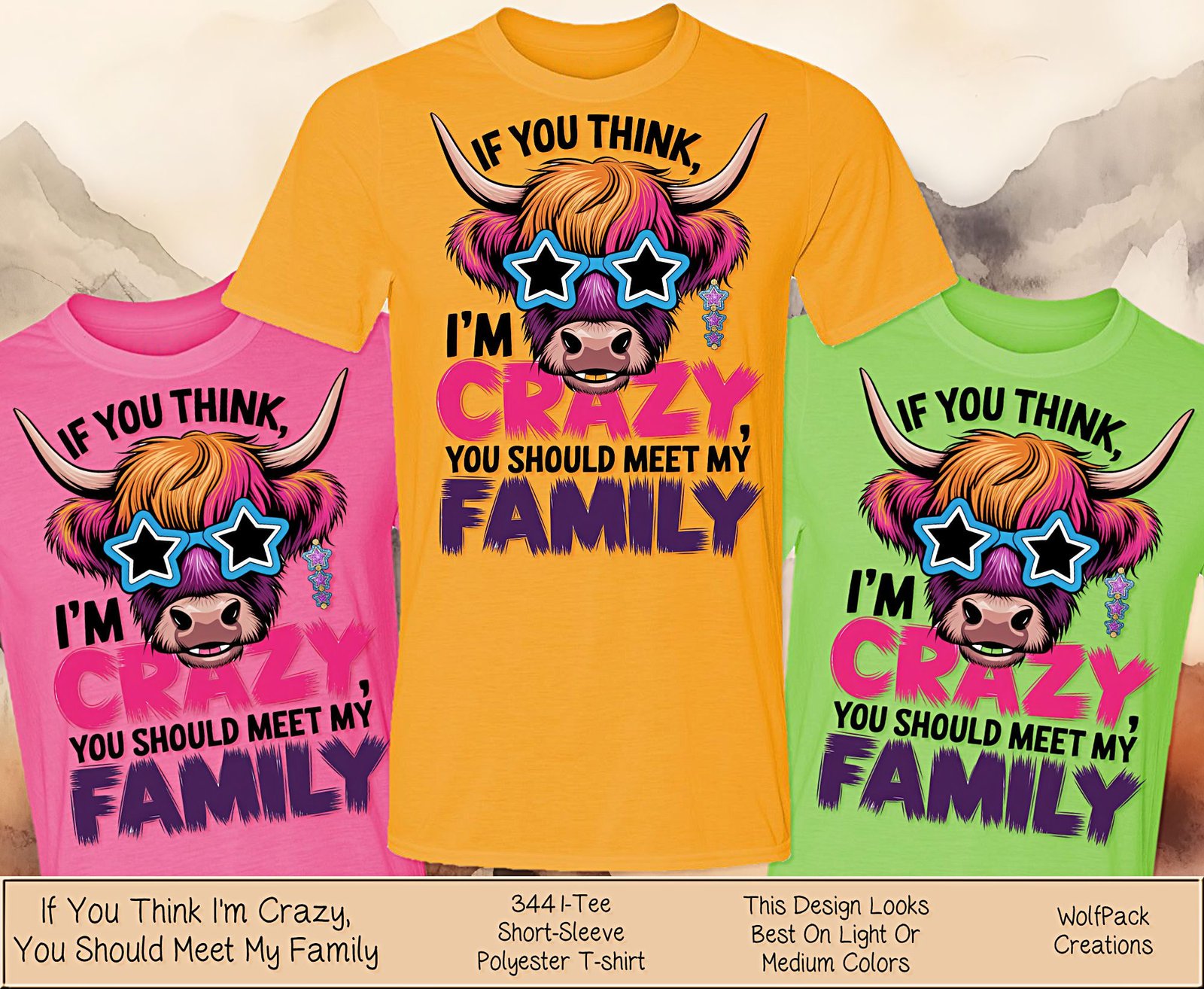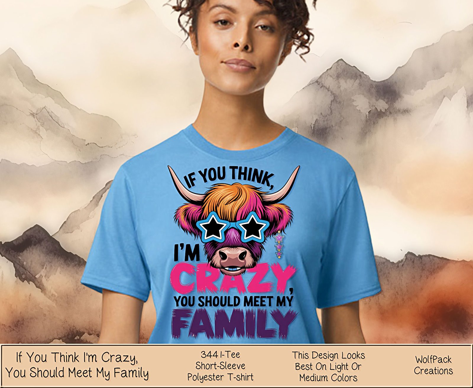 Bring humor and style into your wardrobe with our Highland Cow Tee Shirt, featuring a charming illustration of a shaggy cow with majestic horns. This playful design pairs perfectly with the bold phrase “If You Think I’m Crazy”, making it the ultimate conversation starter for anyone with a fun-loving personality.