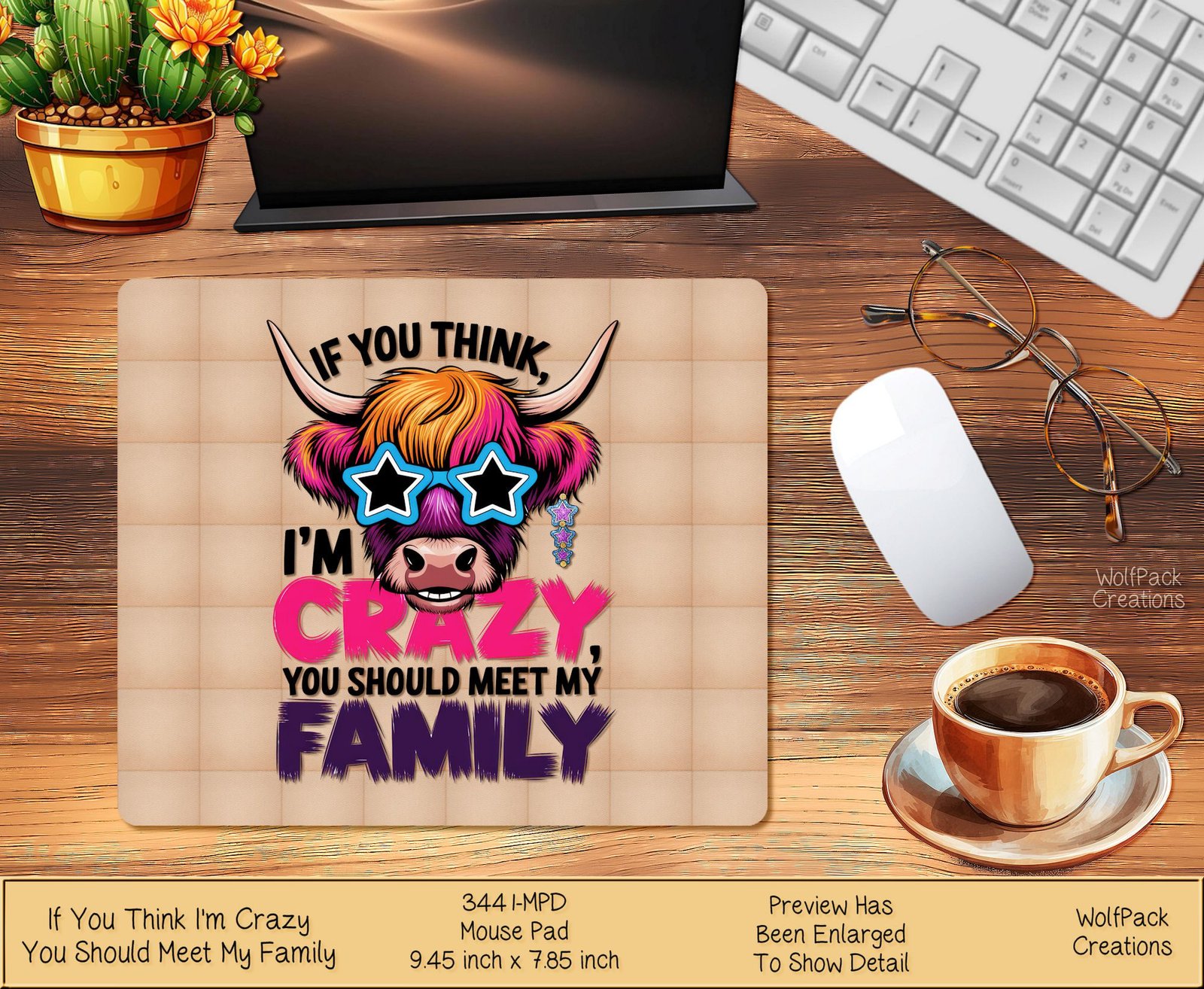 ### Overview Make your desk a conversation starter with our “If You Think I’m Crazy” highland cow mouse mat. Delight your family and guests with this whimsical design featuring a charming highland cow amidst vibrant flowers. Elevate your computer setup with a durable and eye-catching mousepad that brings a touch of fun to your workspace. In addition, this non-slip mouse pad is designed to enhance your workspace visually and functionally. Moreover, it brings character and comfort to any desk setup, whether for work or gaming. ### High-Quality Surface The cloth surface offers smooth, precise tracking for all types of mice. As a result, you experience better control and accuracy during everyday use. For example, the fine weave helps balance speed with precision, making it ideal for both gamers and professionals. In addition, the surface reduces wrist fatigue during extended sessions. ### Durable Construction This mouse pad resists fraying, fading, and daily wear. Moreover, the stitched edges prevent peeling and add to its lifespan. Therefore, it maintains its appearance and performance over time. Meanwhile, the print quality remains vibrant even after frequent cleaning. ### Non-Slip Base A non-slip rubber backing keeps the computer mouse pad securely in place. As a result, it stays stable during fast movements and heavy use. For example, it grips firmly to wood, glass, or laminate desks. Ultimately, you enjoy uninterrupted workflow without slipping or bunching. ### Easy to Maintain Cleaning this fabric mouse surface is quick and simple. For instance, a damp cloth can remove dust, spills, and light stains. In addition, the high-quality print resists discoloration from regular cleaning. Thus, your desk accessory stays fresh and appealing. ### Stylish and Functional The unique design adds a decorative element to your workspace. Moreover, it complements a variety of decor styles from rustic to modern. For example, pair it with matching accessories for a coordinated look. As a result, your workspace feels more inviting and personal. ### Perfect Gift Idea This non-slip mouse pad makes a thoughtful gift for friends, family, and coworkers. In addition, it suits birthdays, holidays, and workplace celebrations. Therefore, it is a versatile choice for any recipient. Meanwhile, its durability ensures they will enjoy it for years to come. ### Conclusion Ultimately, this mouse pad blends style, comfort, and practicality. As a result, it enhances both the appearance and performance of your workspace.