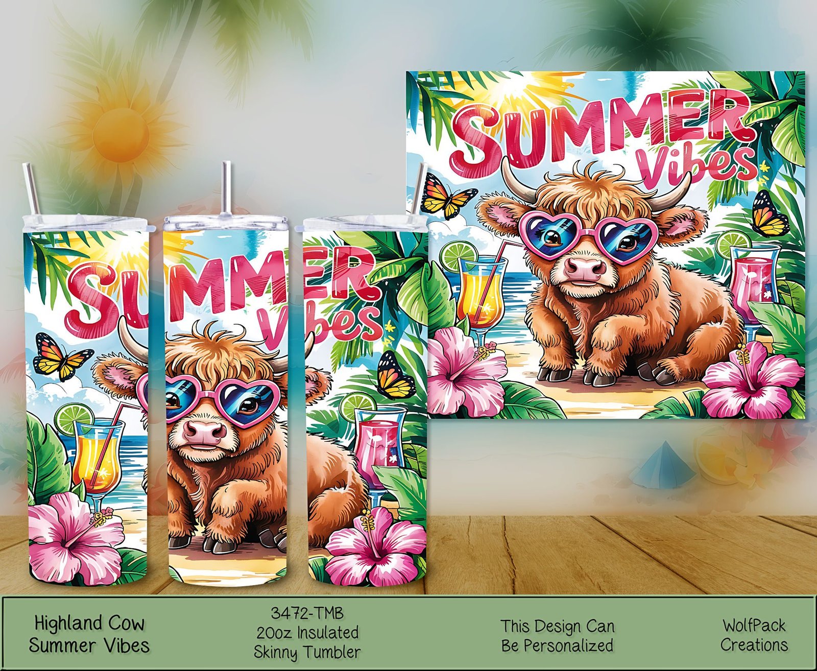 Crafted with high-grade stainless steel, this vacuum mug not only keeps your beverages hot or cold for hours but also boasts a high gloss finish for a touch of elegance. Proudly made in the USA, this mug is not just functional but also supports local businesses. Embrace durability and style while savoring your favorite drinks on the go with our Summertime Themed Highland Cow-inspired mug.
