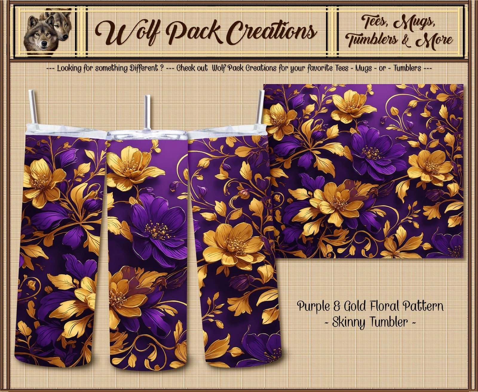 Add a pop of color and style to your drinkware collection with our eye-catching purple and gold floral design. The intricate floral pattern is not only visually appealing but also adds a touch of sophistication to your tumbler. Whether you’re sipping your morning coffee or enjoying a refreshing iced tea, our tumbler will make a statement wherever you go.