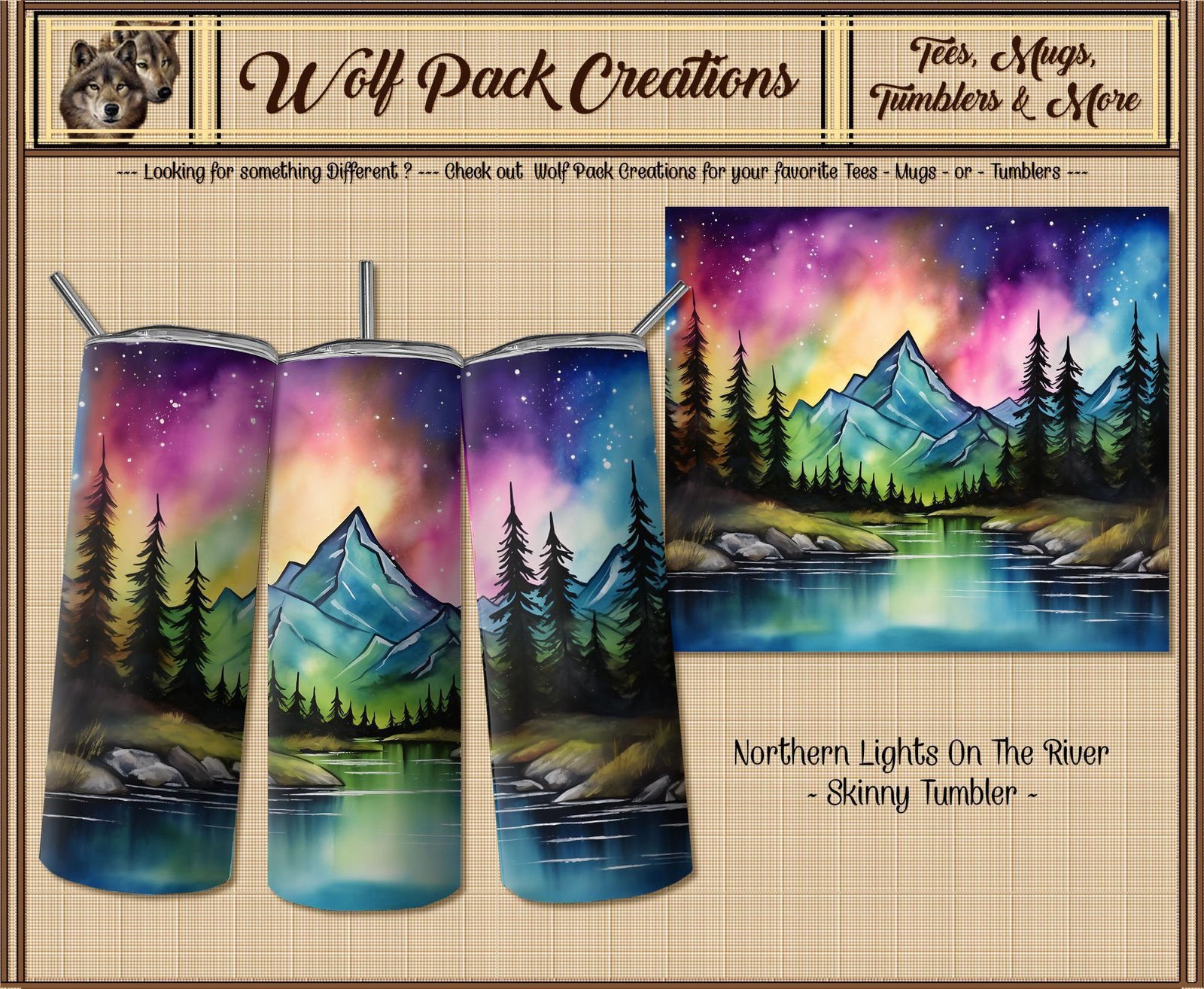 Here’s a beautiful tumbler with the northern lights.
