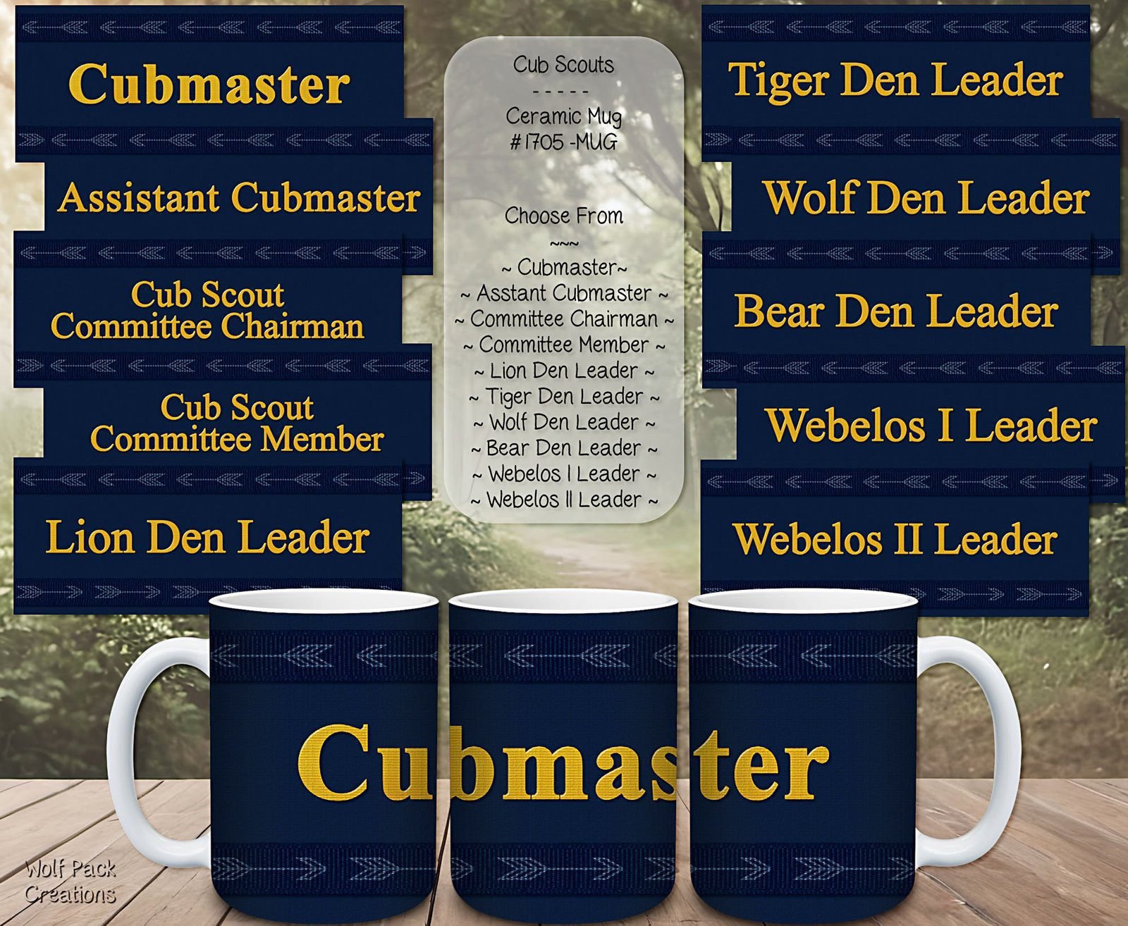 | Name | Cubmaster, Assistant Cubmaster, Cub Scout Committee Chairman, Cub Scout Committee Member, Lion Den Leader, Tiger Den Leader, Wolf Den Leader, Bear Den Leader, Webelos I Leader, Webelos II Leader |