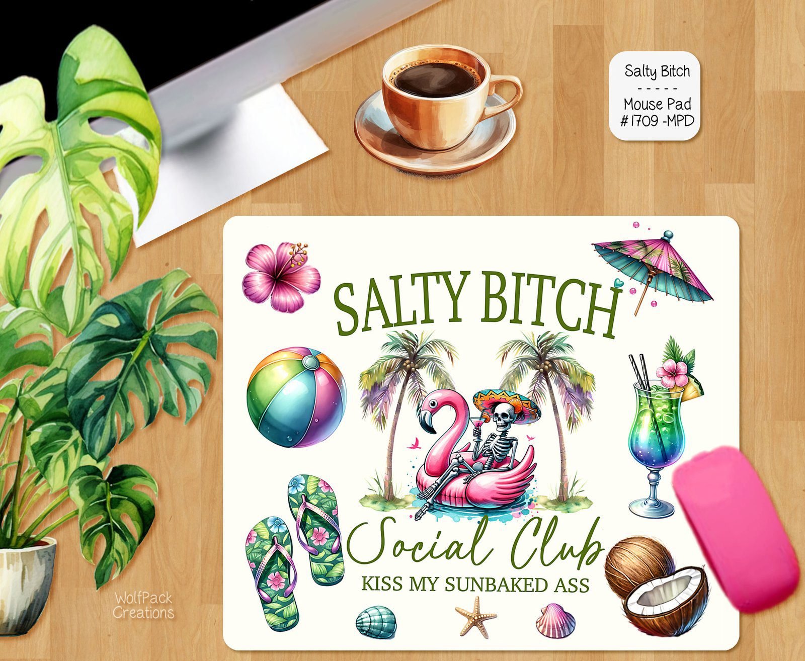 Adorned with a delightful beach theme featuring vibrant flip flops, umbrellas, beach balls, and coconuts, this mouse pad brings a slice of summer to your everyday routine. It seamlessly blends functionality with a stylish aesthetic that can brighten up any desk. Whether you are working at home, in the office, or even taking your equipment to the beach for a digital detox, this mouse pad is the perfect companion.