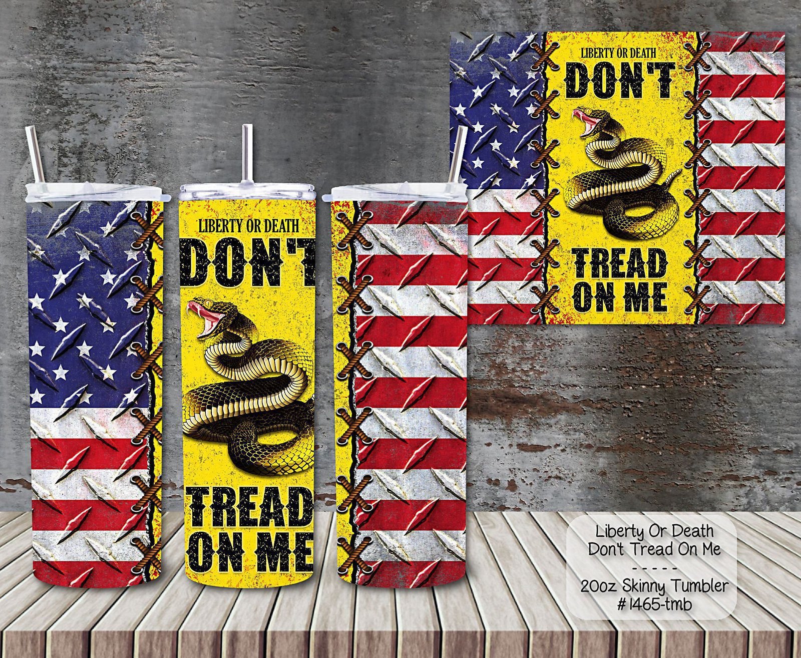 Pick up this tumbler today. With it’s bold design: Liberty or Death, Don’t Tread on Me, it’ll be sure to please.