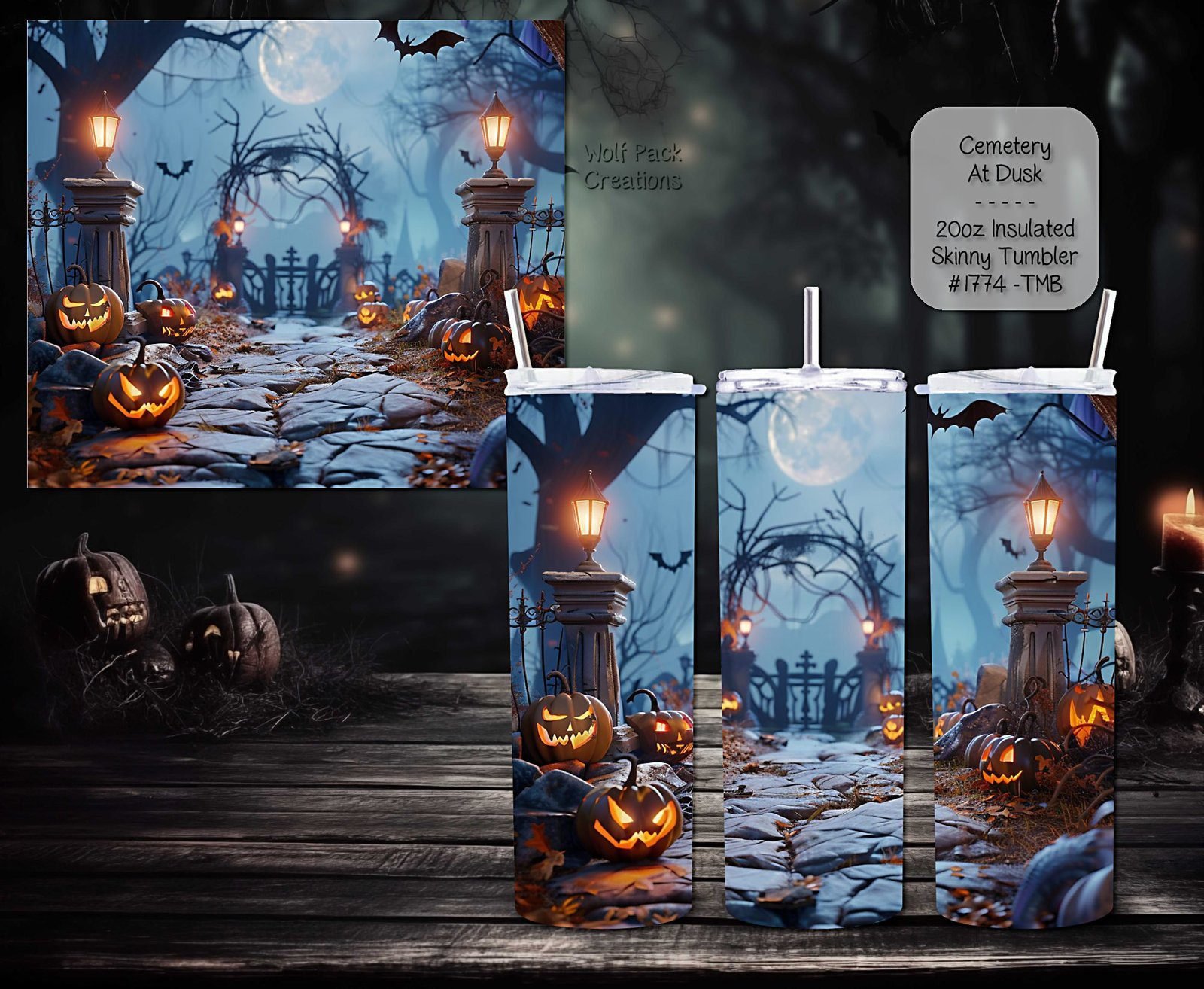 Embrace the Halloween spirit with our uniquely designed tumbler, featuring creepy cemetery scenes and adorable pumpkins. Its sleek design ensures it fits comfortably in your hand while adding a touch of spookiness to your day.