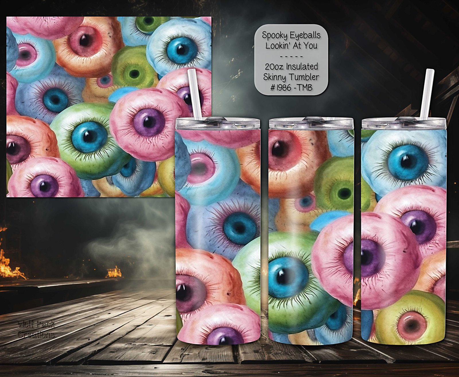 This 20-ounce stainless steel skinny tumbler is both functional and stylish, perfect for keeping your beverages at the ideal temperature. The tumbler boasts a unique eyeball design that sets it apart from standard drinkware.