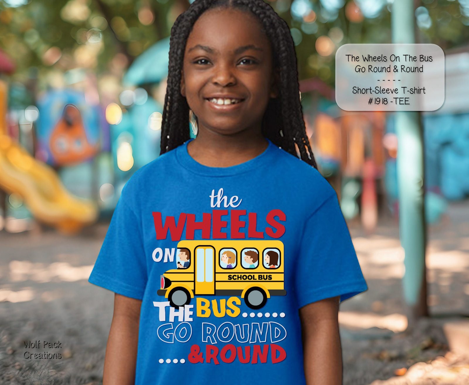 The shirt features a fun and unique ‘wheels on the bus’ graphic, adding a playful element to your wardrobe. It’s a versatile piece that can be dressed up or down for various occasions.