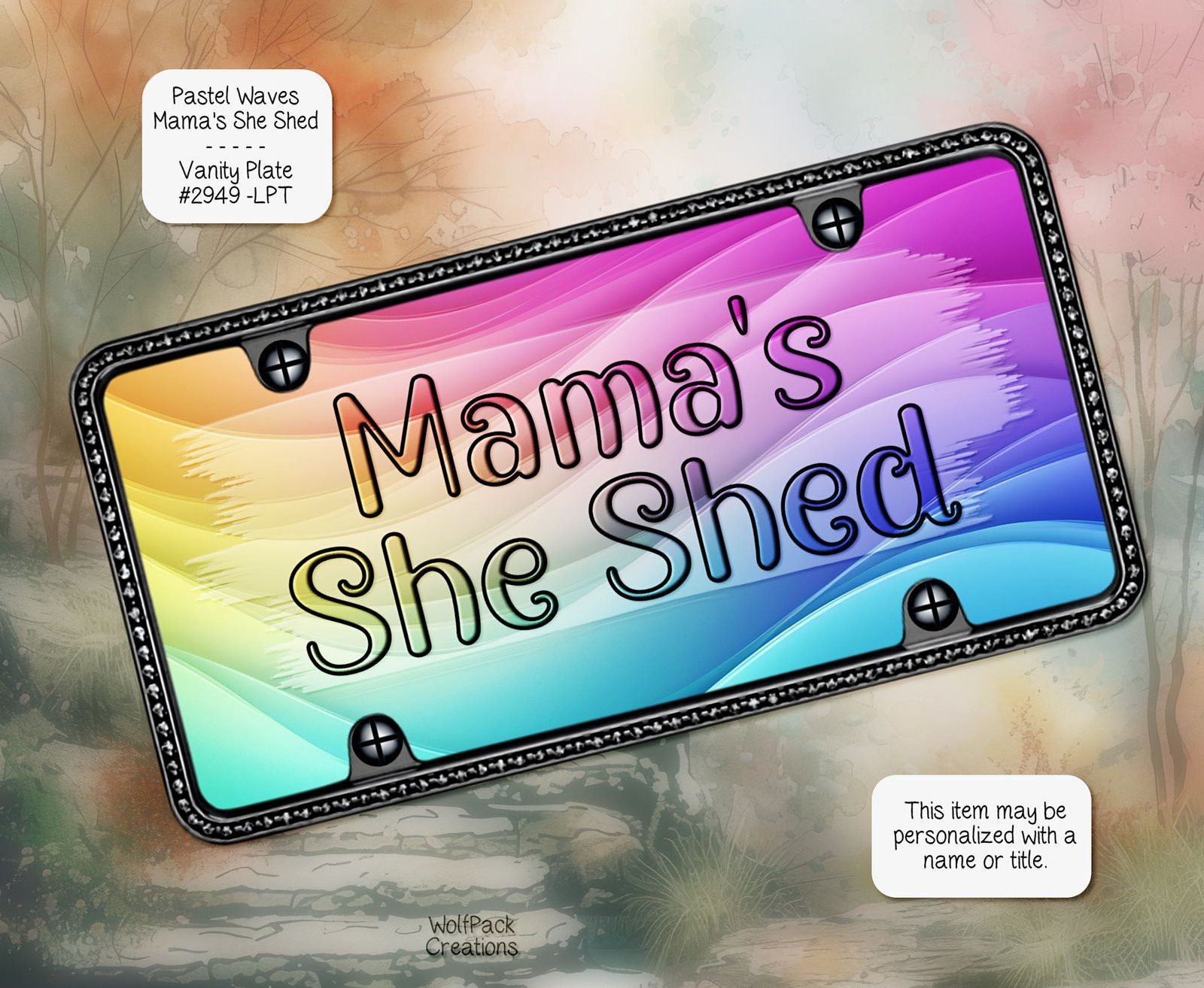 Introducing our premium rectangle aluminum license plate, a perfect fusion of durability and style designed to elevate your car or any special space like your she shed or craft room. Made from high-quality aluminum, this vanity plate provides not just aesthetic appeal but also exceptional weather resistance, ensuring that it stands up against the elements over time.