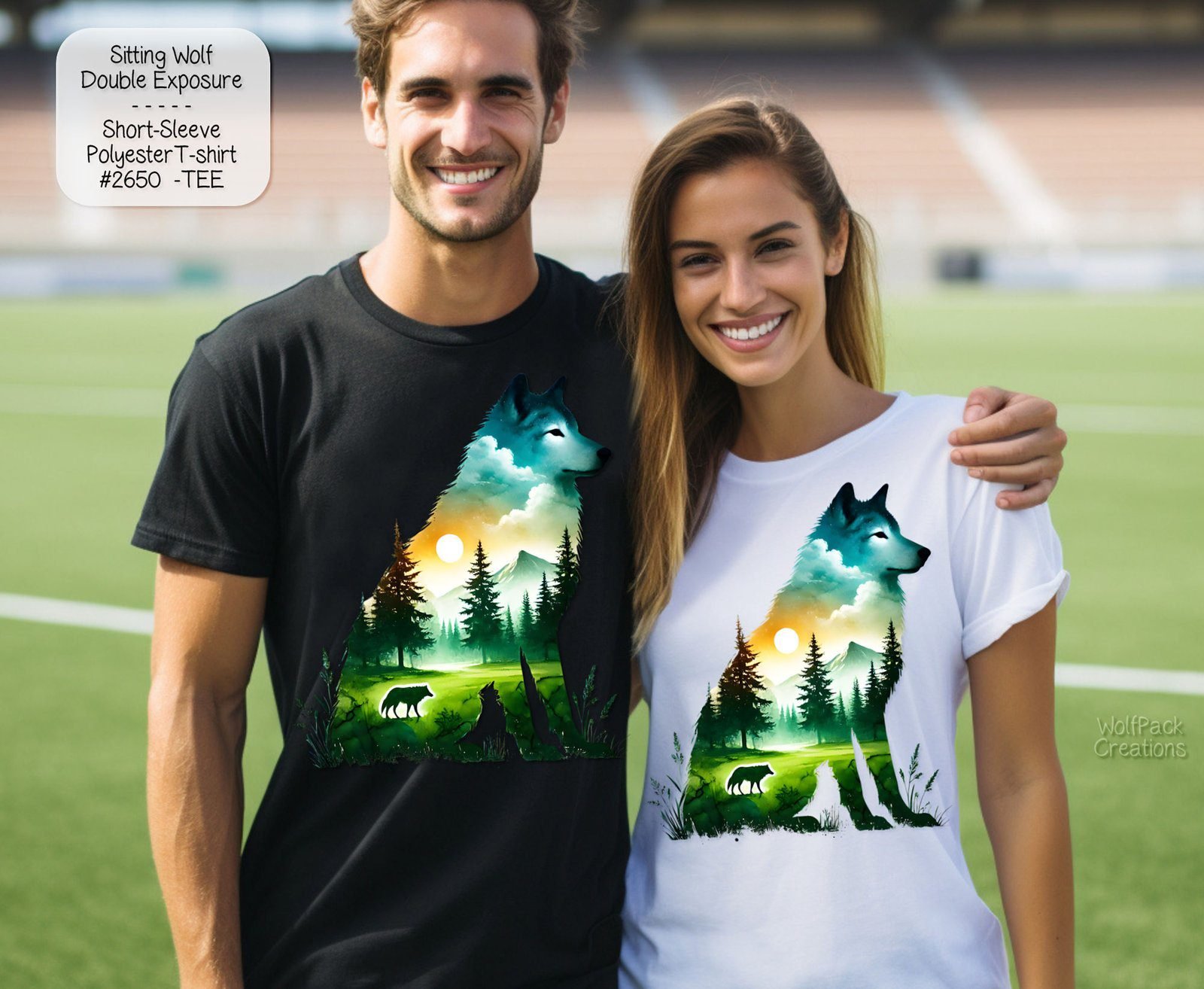 Make a statement with our unisex short sleeve shirt, crafted from high-quality polyester. This shirt brings together comfort and style, showcasing an eye-catching graphic of wolves, perfect for animal lovers.