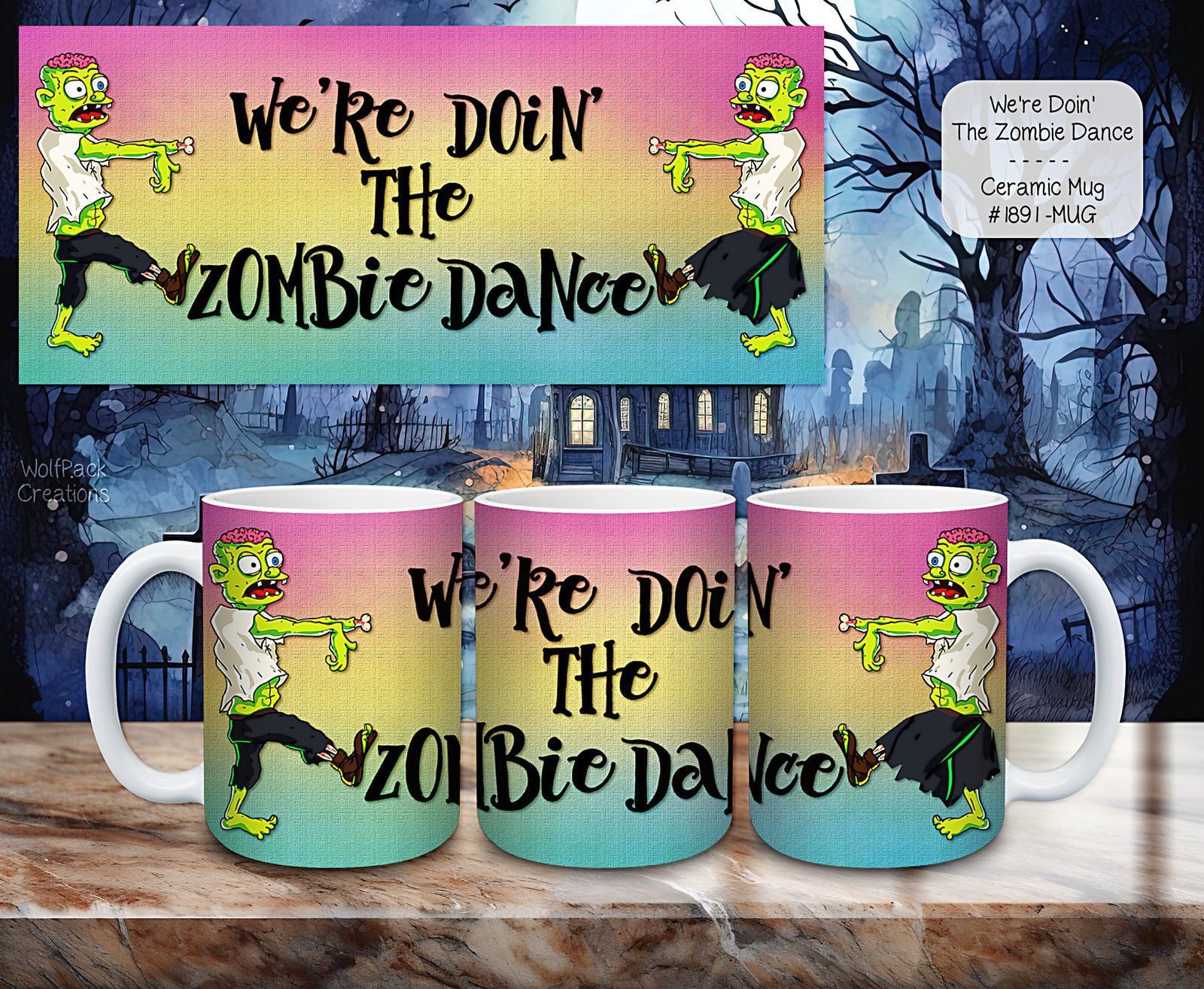 Are you a coffee lover with a sense of humor? Meet our Zombie Dance Ceramic Coffee Mug! This fun and functional product comes in both 11-ounce and 15-ounce sizes, catering to your caffeine needs.